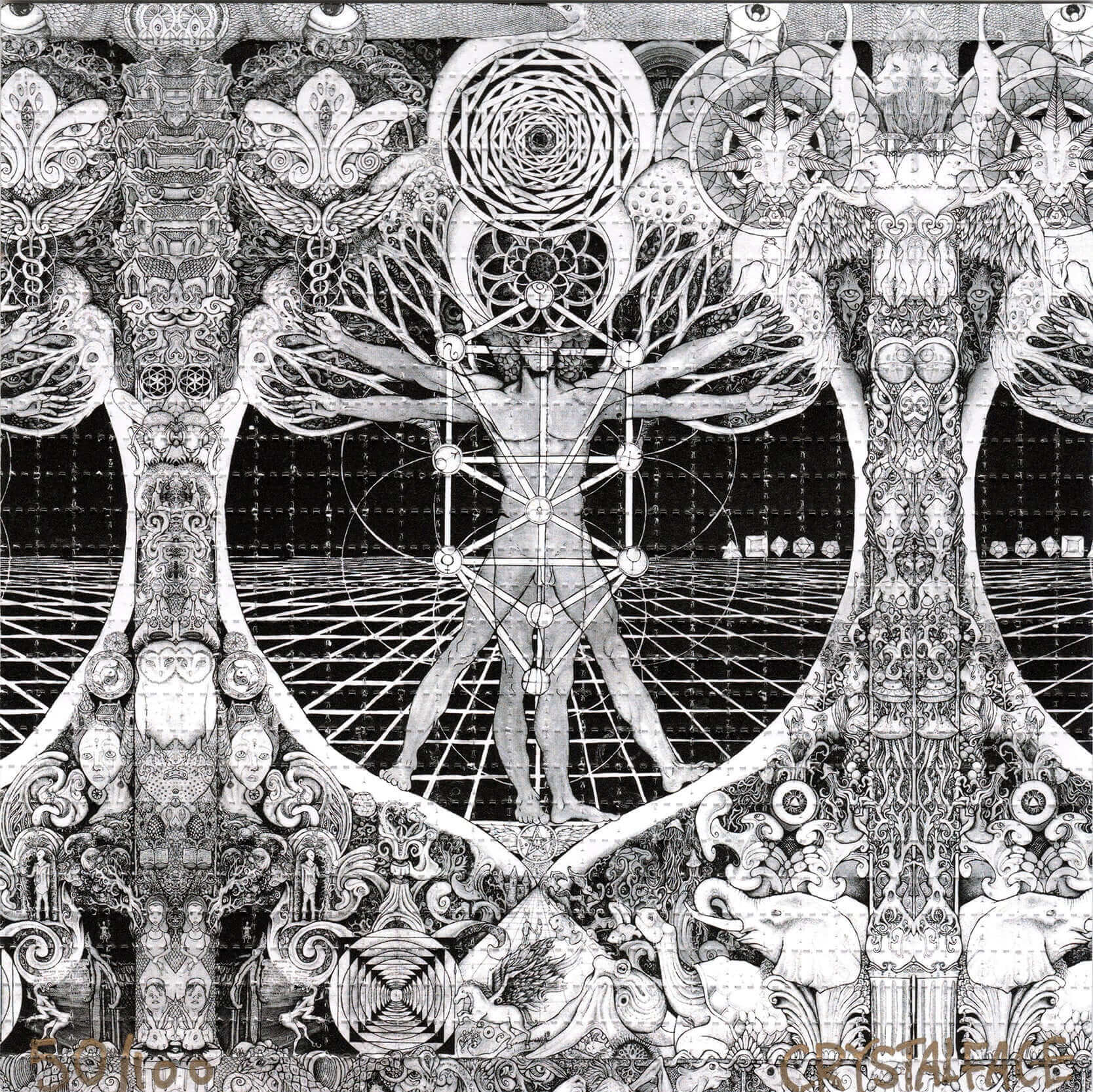 The alliance encouraged us to create a composition that could be showcased or distributed as a physical item. While I brainstormed alternatives to printing the design on regular poster paper or card stock, I recalled several of my peers having characterized my artistic aesthetic as being “psychedelic”. With that in mind, I decided to print my design on blotter paper. These pieces are more colloquially known as “blotter art” among collectors. This creative decision aimed to differentiate my piece from other artists, while guiding the creative direction of the project.
